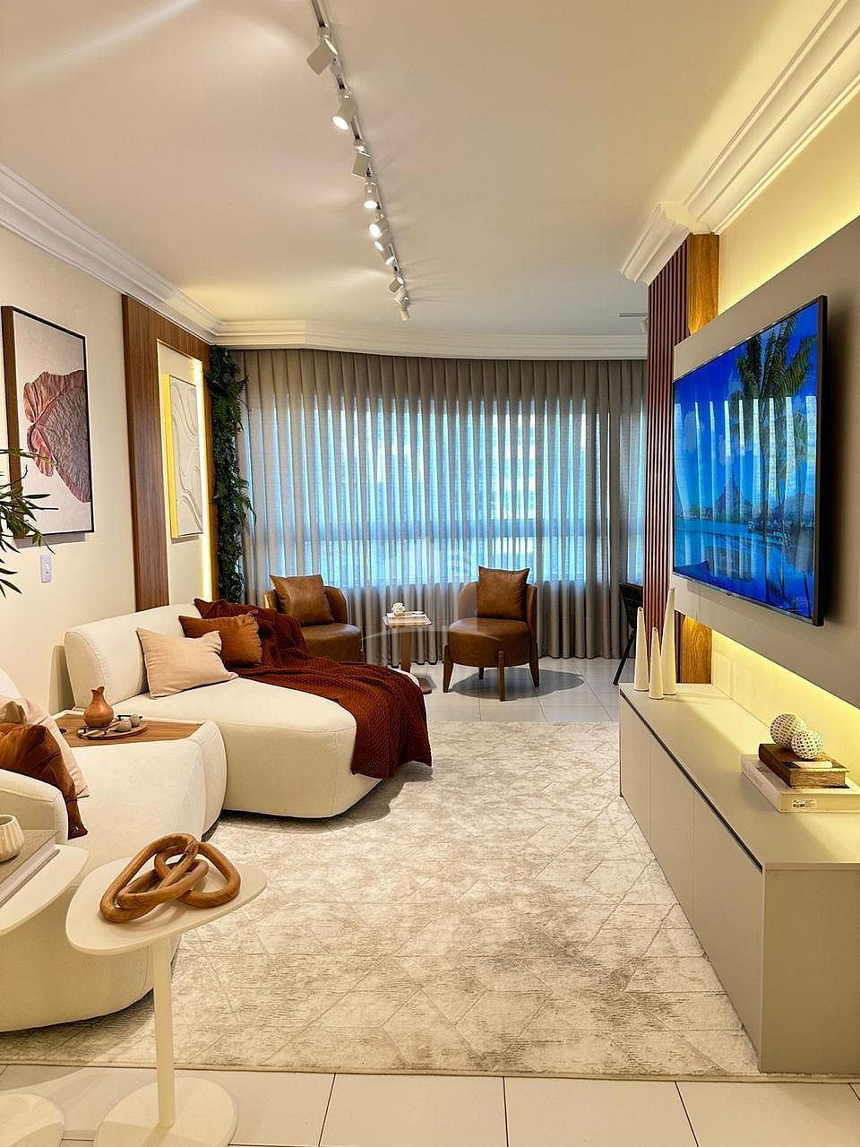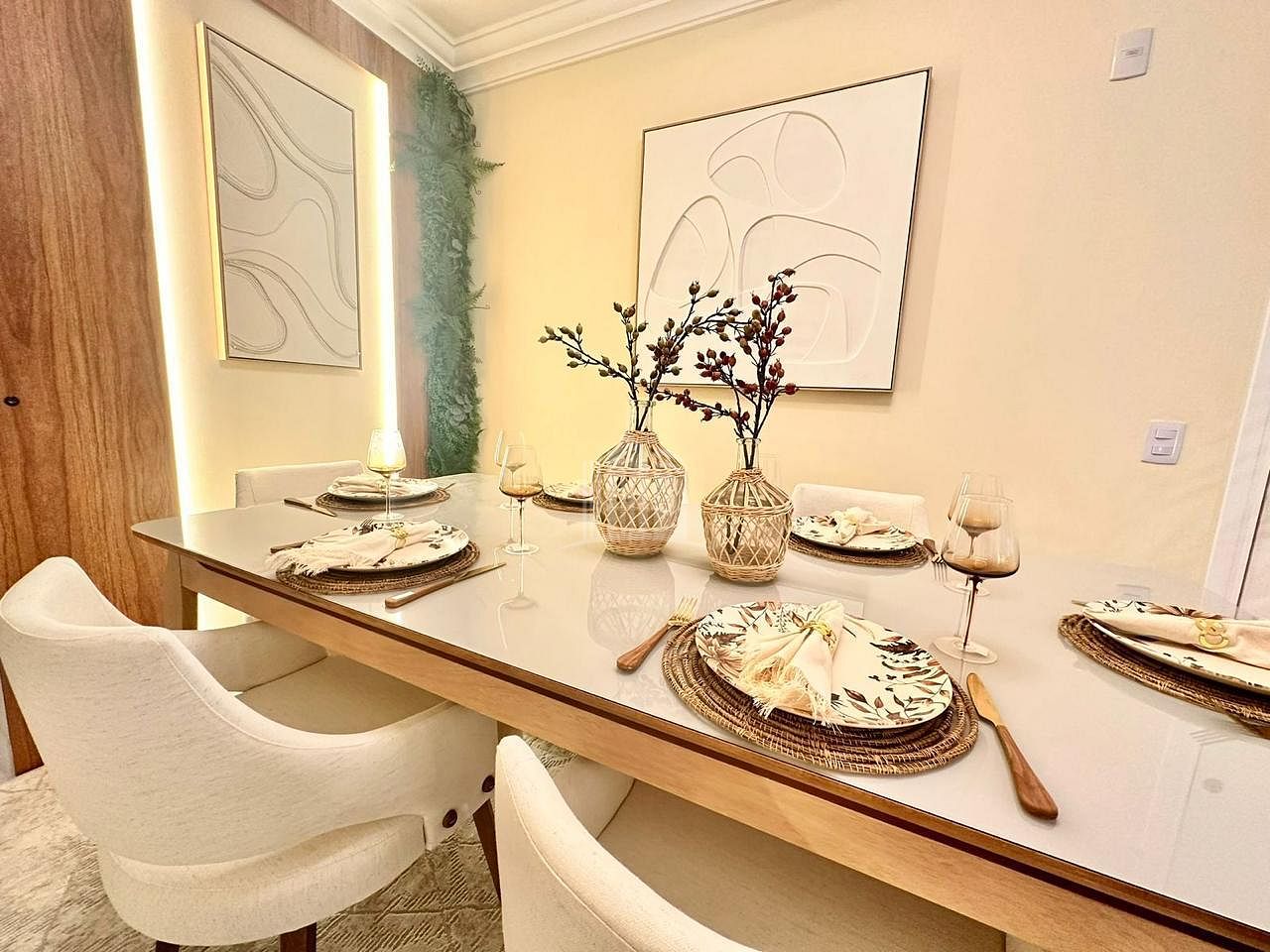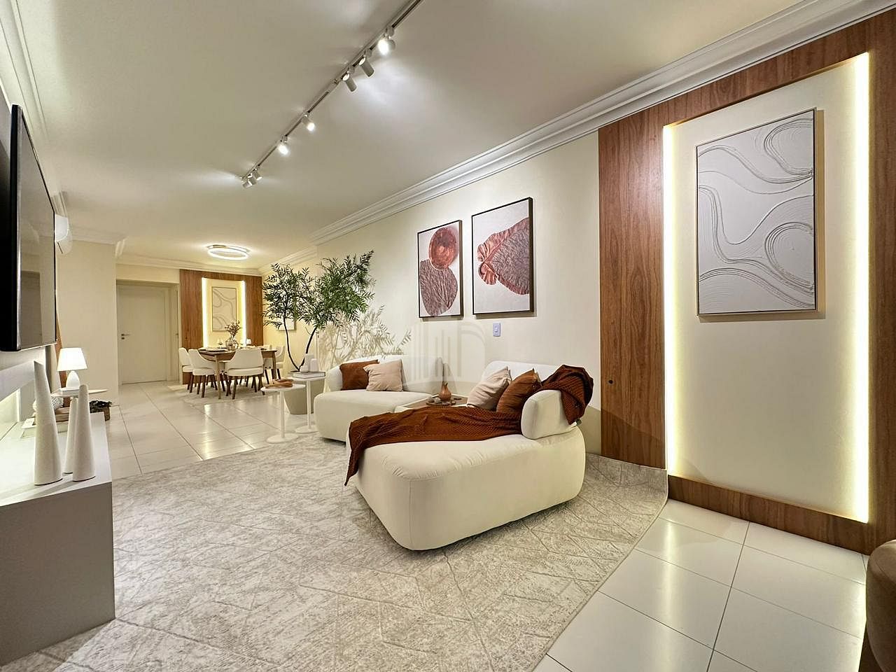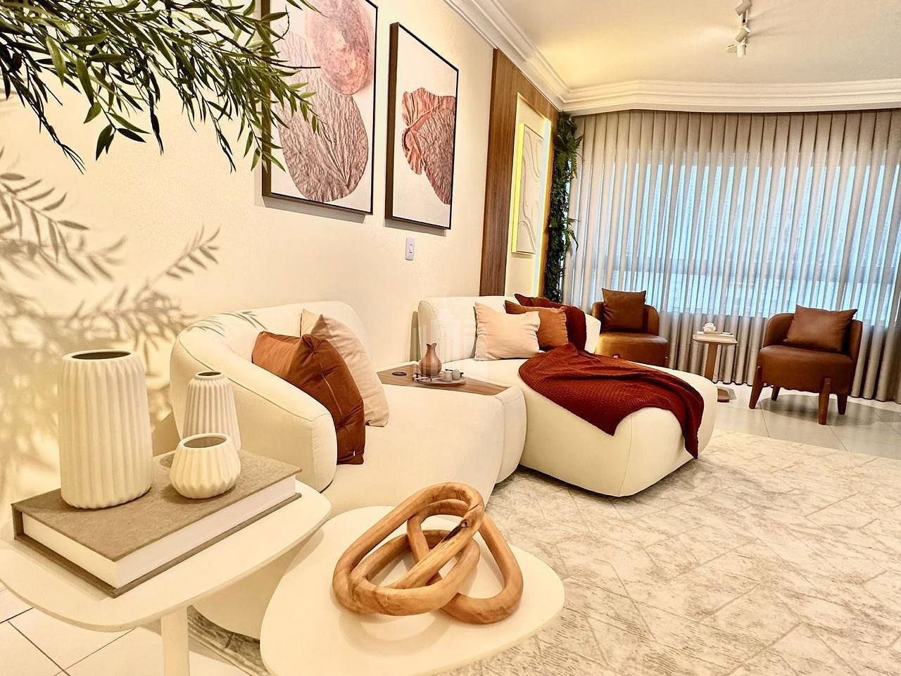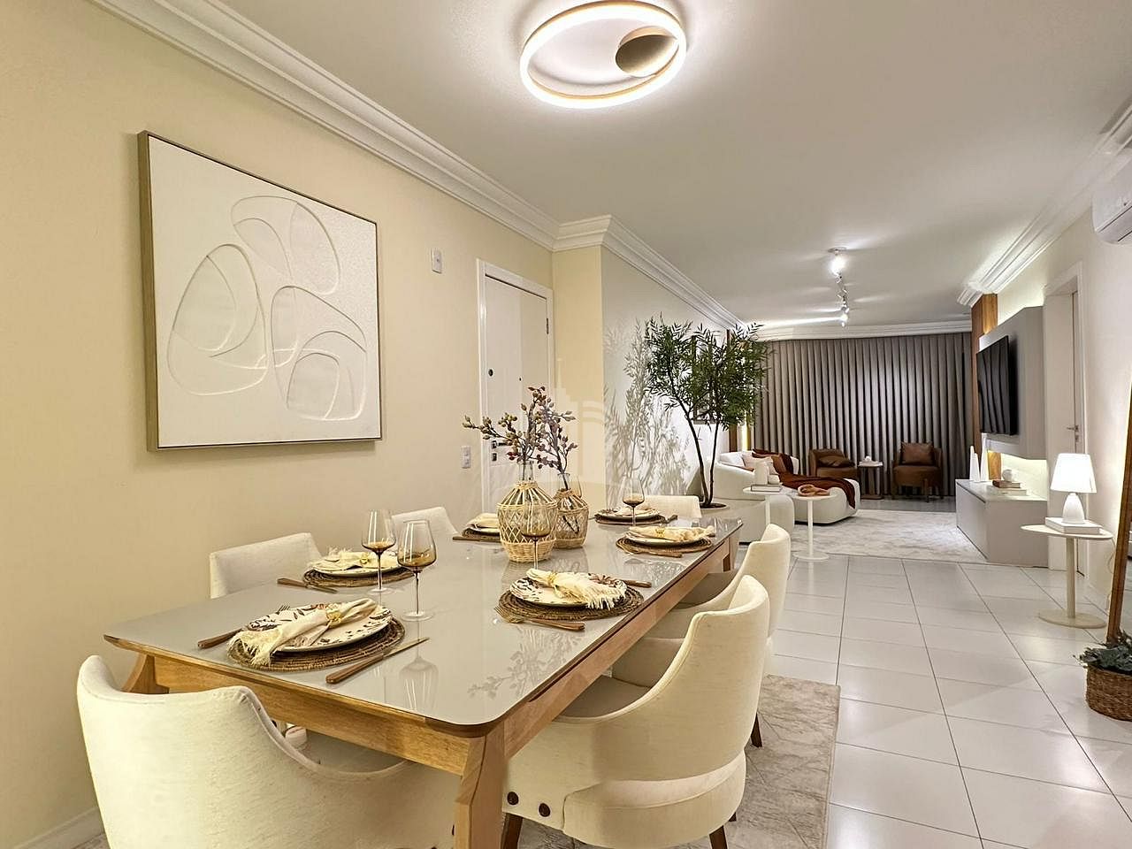 Com 110 metros quadrados de área privativa, o imóvel oferece ambientes cuidadosamente planejados, com móveis e acabamentos de alta qualidade. A sala de estar integra-se à sala de jantar e à sacada, que conta com churrasqueira a carvão, proporcionando um espaço iluminado e amplo, perfeito para momentos de convivência e lazer.