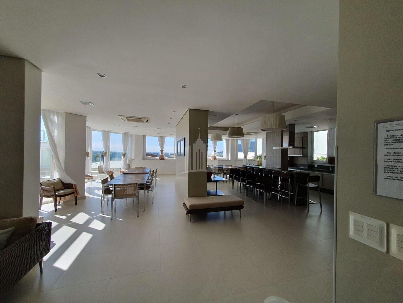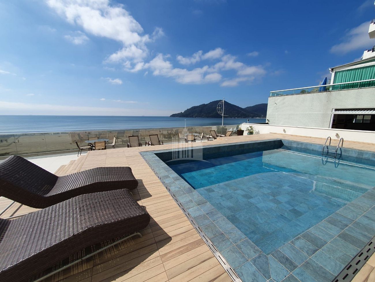 - Salão de Festas com quiosque de frente para o Mar.