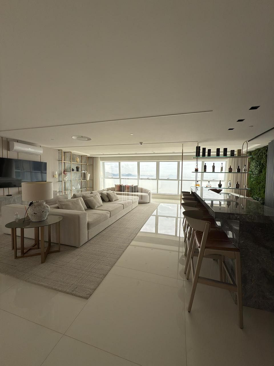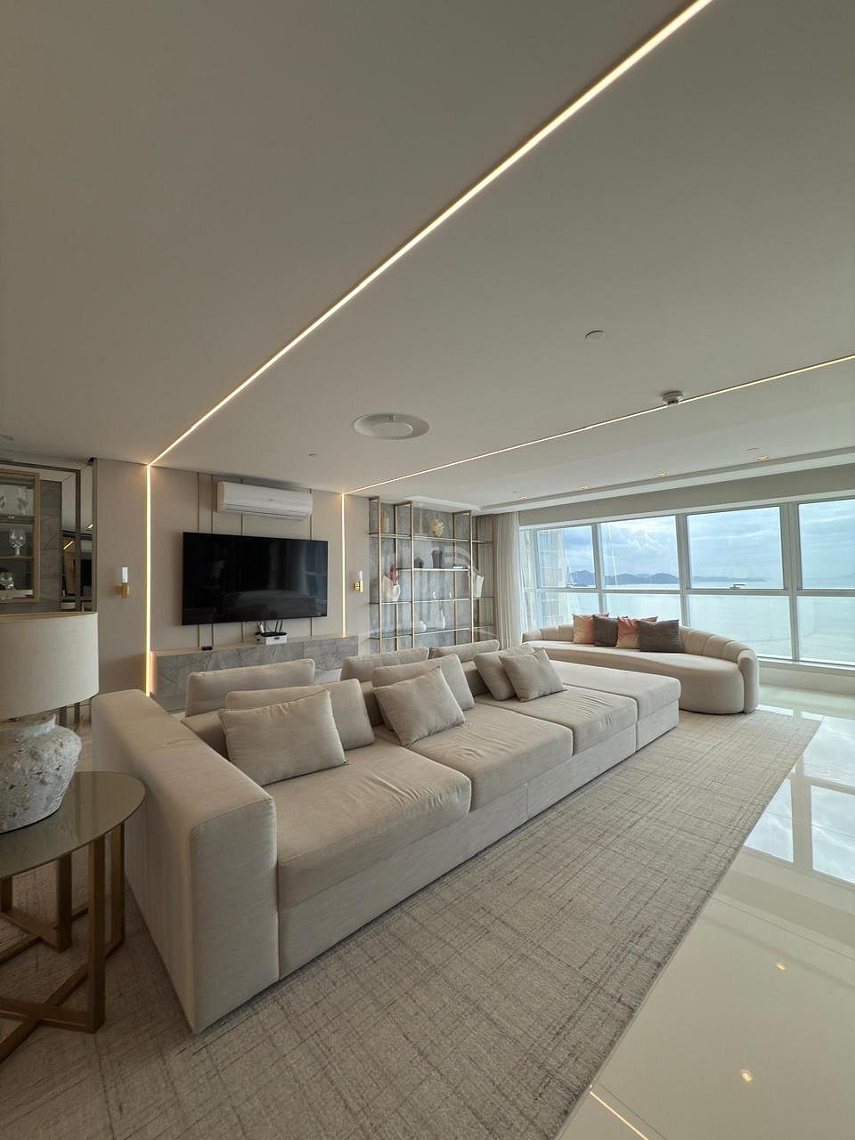- Living com vista frontal e permanente para o mar