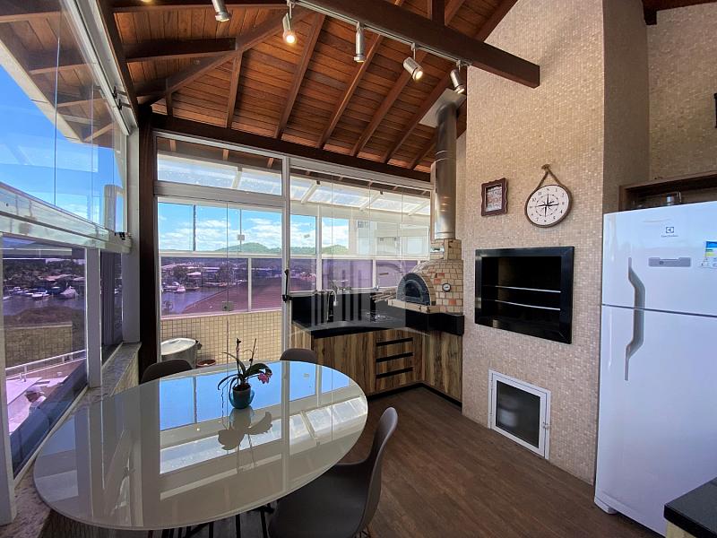 Conheça agora esse apartamento Garden, uma mansão suspensa com mais de 310 m² de área privativa, mobiliada e equipada com localização privilegiada na Barra Sul. Cerca de 100 metros da praia e pouquíssimos passos do rio tem uma bela vista para o mar e aos fundos você pode observar a saída dos barcos da Marina. O apartamento conta com 03 suítes sendo uma master com hidromassagem, closet e vista para o mar além de sala de televisão e jantar integradas com lareira para os dias frios e vista mar com brisa suave do mar nos dias mais quentes. A cozinha toda equipada além de uma ótima área de serviço com linda e muita ventilação. Mas o grande diferencial desse apartamento fica por conta da área de lazer totalmente exclusiva para uso da sua família. Uma enorme piscina aquecida com cascata e tobogã com esguicho de água além de ser toda envidraçada e com o teto retrátil permitindo seu aproveitamento tanto nos dias quentes como nos dias frios. Também contamos com uma bela jacuzzi aquecida e toda envidraçada num espaço reservado. Além de tudo isso temos a parte gourmet que inclui churrasqueira a carvão e um belo forno a lenha de pizza. Além de um banheiro completo para atender toda área social. Outro diferencial desse apartamento é a quantidade de vagas de garagem que no total são 5 vagas possibilitando inclusive acomodação para seu jet ski ou barco. O empreendimento é novo com apenas 8 anos de construção, recém reformado e ainda conta com portaria 24 horas, portão eletrônico, salão de jogos, playground, piscina adulto e infantil, cinema, salão de festas, sauna e academia. Não perca a oportunidade e venha agora mesmo agendar a sua visita, estamos te esperando!