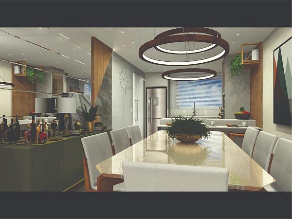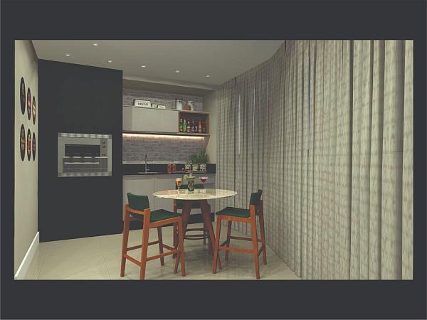 - Cozinha com espaço gourmet e churrasqueira integrada