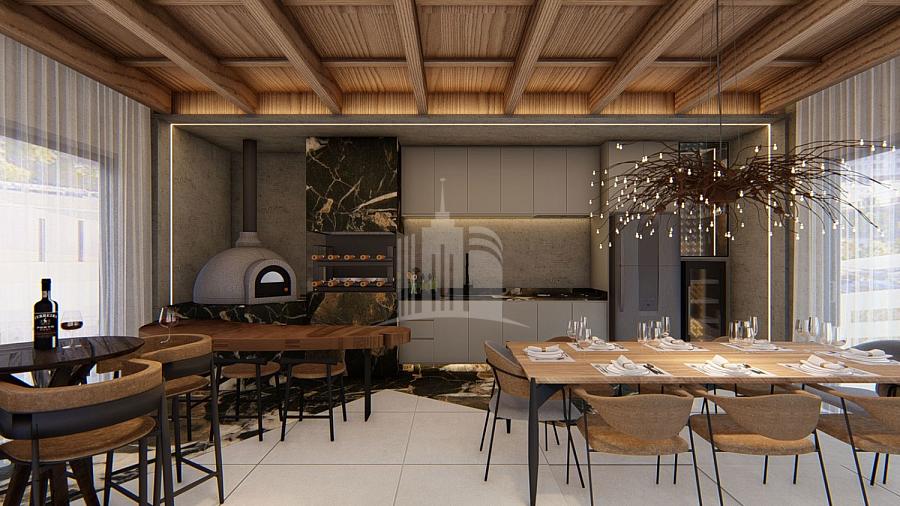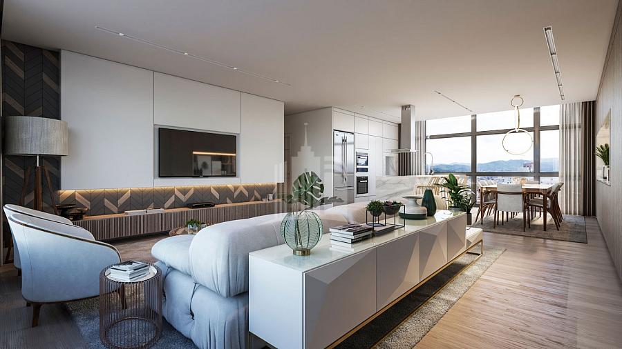 Apartamento no Edifício Pericó Residence em Balneário Camboriú de 141m², 3 suítes, 2 vagas, sacada com churrasqueira, adega privativa, lavabo, área de serviço, living integrado.