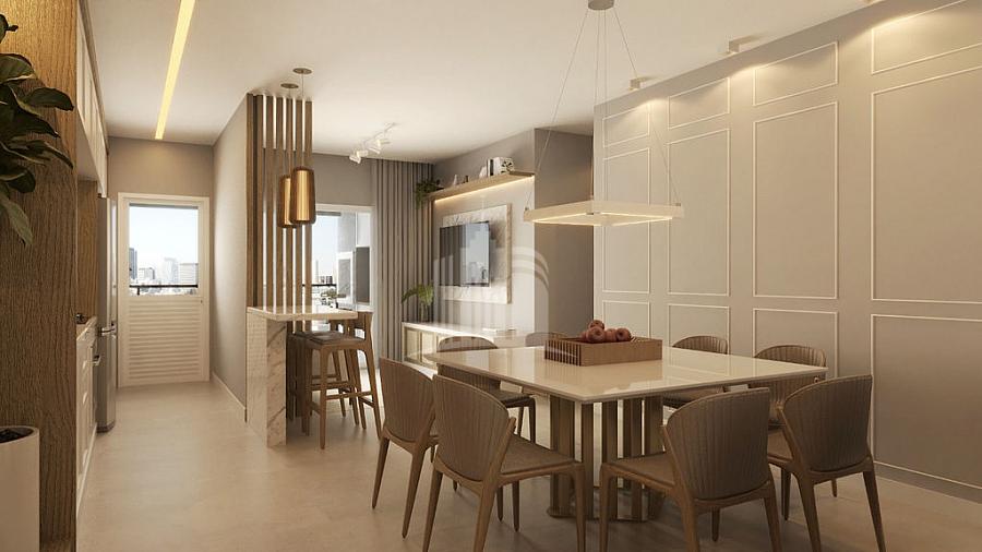 Apartamento mobiliado, conta com 64,91m² de área privativa composto por 02 dormitórios, sendo 01 suíte, sala integrada para 02 ambientes, churrasqueira a carvão, Living, cozinha americana e 01 vaga de garagem privativa.