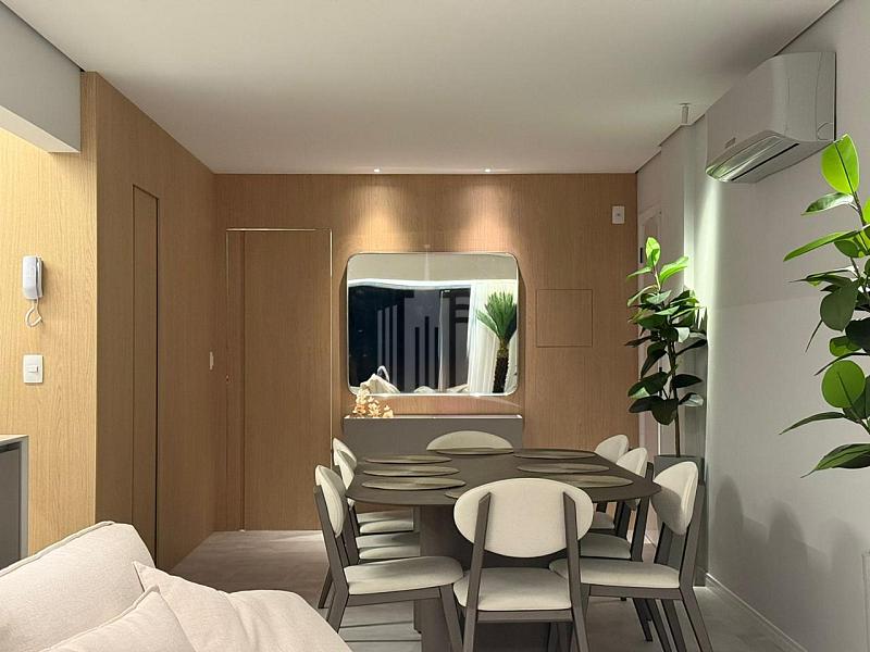 Completamente reformado, finamente decorado e mobiliado, 03 Dormitórios, sendo 01 Suíte, sacada, Sala de Estar e Tv e sala de Jantar