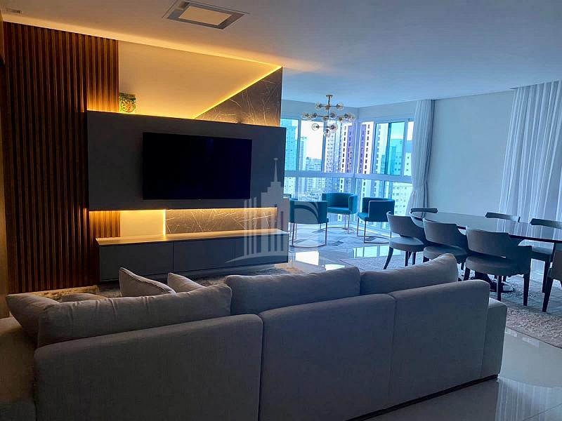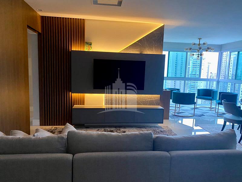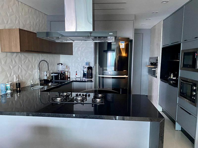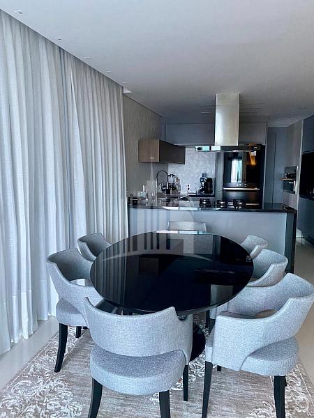 130m² privativos, vista do mar, 03 Suítes, living integrado, lavabo, cozinha, área de serviço, alto padrão em acabamento e 02 vagas de garagem.