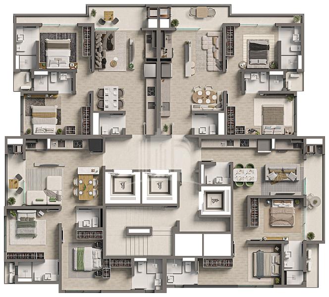 Os apartamentos do Villa Lumière traduzem o equilíbrio entre conforto, funcionalidade e estética. Plantas bem distribuídas valorizam a luminosidade natural, a ventilação e o uso inteligente dos espaços. Cada ambiente foi pensado para refl etir o bem-estar cotidiano com um toque contemporâneo. Um projeto que respeita o seu tempo, seu ritmo e sua maneira de viver.