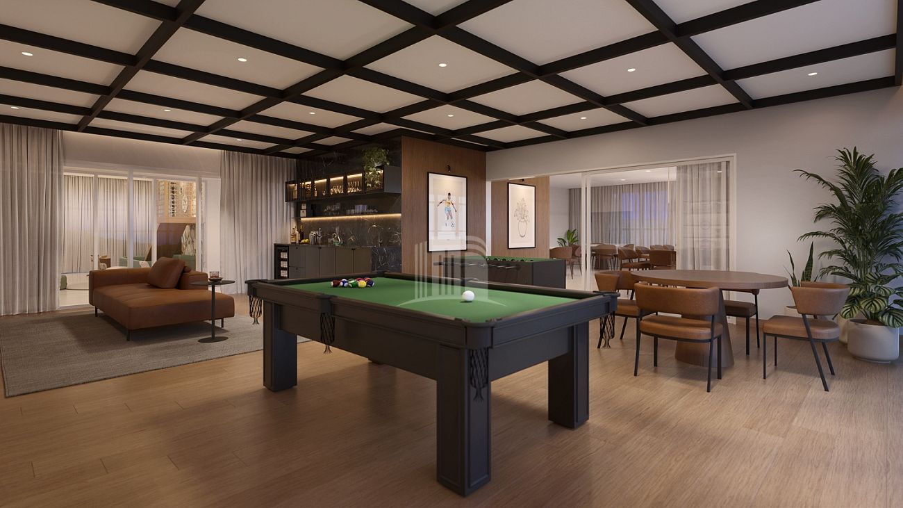 ✨ Mais de 900 m² de lazer completo: piscina adulto e infantil, salão de festas, espaço gourmet, academia, bar na piscina, playground, sala de jogos e muito mais!
