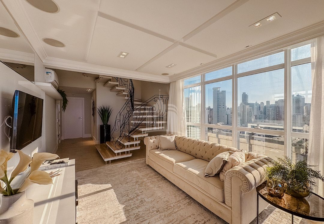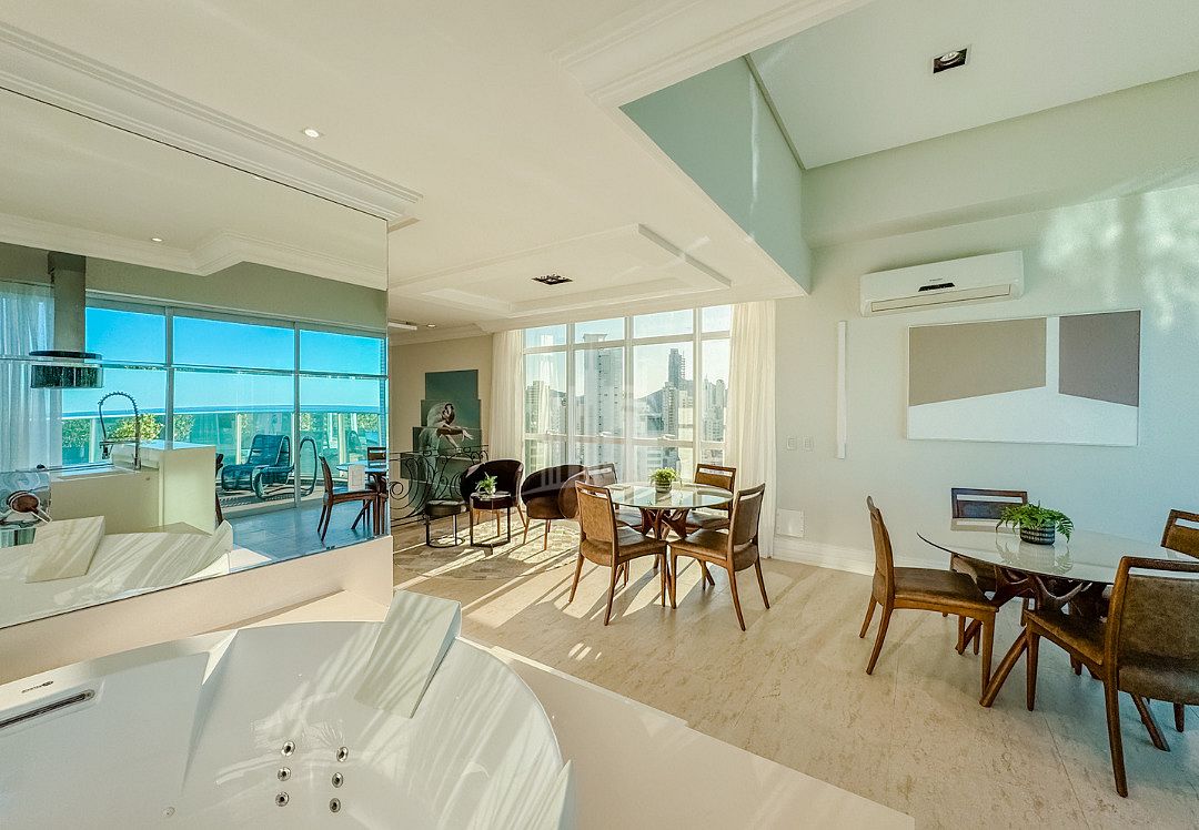 Com acabamento impecável, decoração sofisticada e ambientes espaçosos, esta cobertura mobiliada em Balneário Camboriú é ideal para quem busca conforto, elegância e uma vista deslumbrante do oceano.